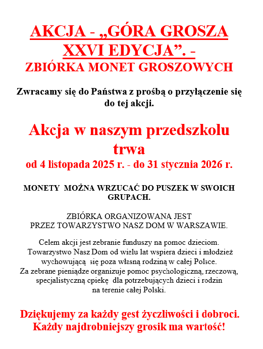 Aby wyrazić szacunek dla obchodzonego święta i podkreślić jego podniosły i ważny wymiar, bardzo prosimy o odświętny ubiór dzieci w tym dniu.