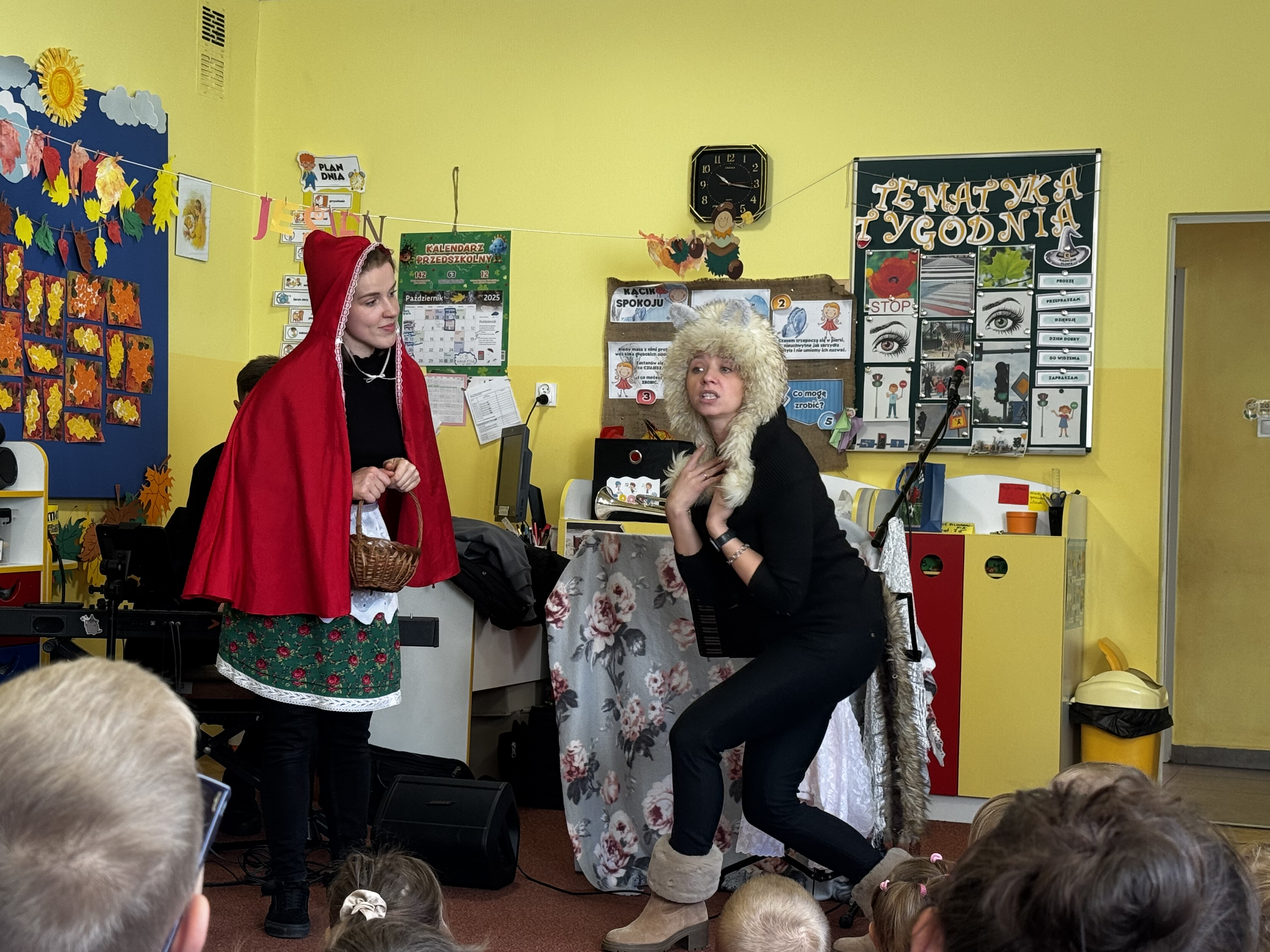 Historia znanej bajki o dziewczynce w czerwonym kapturku nabrała nowego, niezwykle ciekawego brzmienia dzięki muzycznej oprawie i aktorskim interpretacjom. Podczas występu przedszkolaki mogły nie tylko słuchać, ale też obserwować różne instrumenty muzyczne. Artyści zagrali m.in. na trąbce, cymbałkach, keyboardzie oraz trójkącie, pokazując, jak różnorodne mogą być dźwięki i jak wspólnie tworzą muzyczną opowieść.