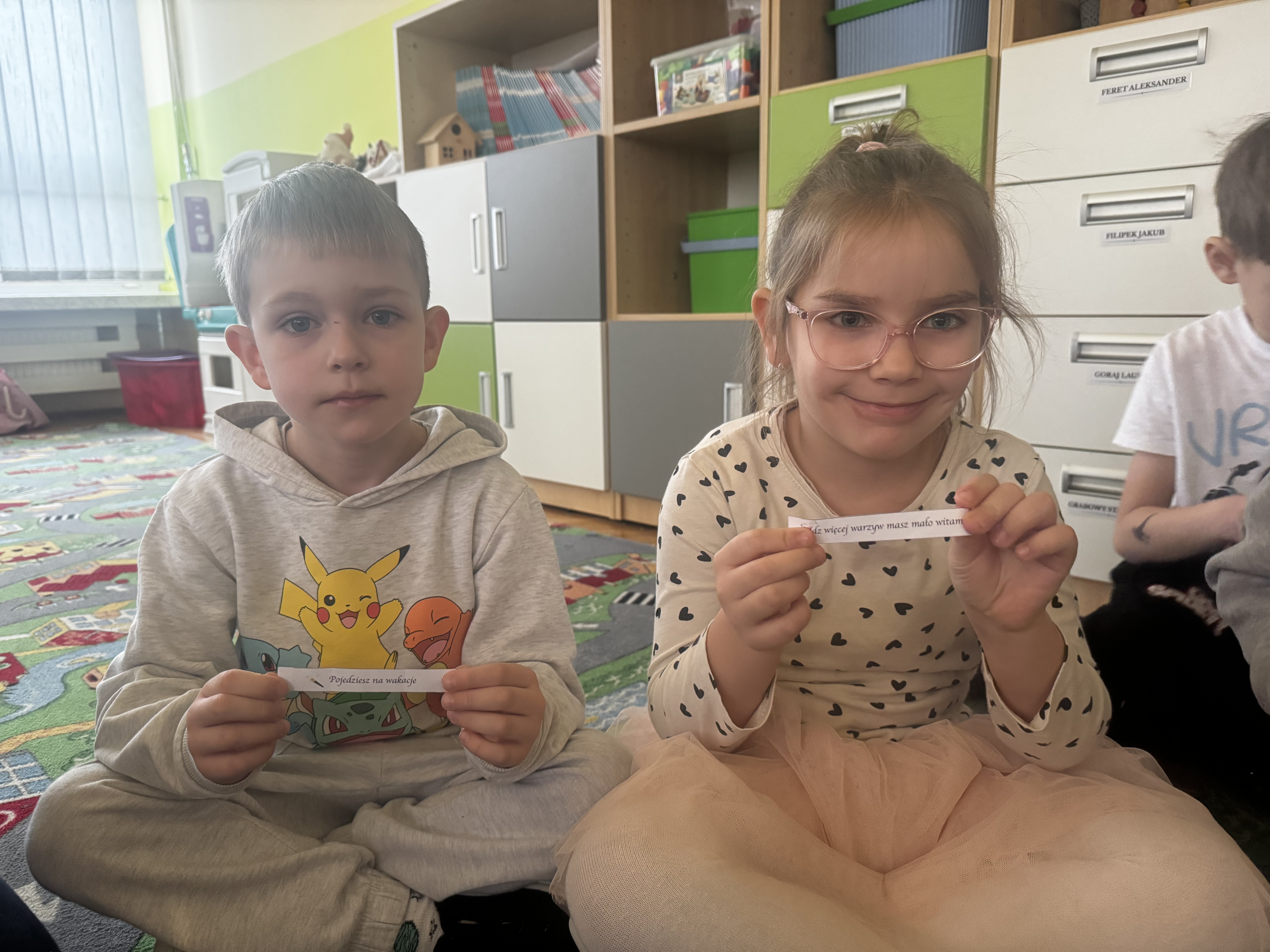 Tego dnia dzieci zanurzyły się w świat tradycji i zwyczajów andrzejkowych, które od lat wywołują uśmiech i pobudzają wyobraźnię najmłodszych. Na początek przedszkolaki obejrzały bajkę o Andrzejkach, dzięki której poznały historię tego niezwykłego dnia oraz dowiedziały się, skąd wzięły się popularne wróżby. Następnie rozmawiały o zwyczajach związanych z andrzejkowym wieczorem i przygotowały się do swoich własnych magicznych zabaw. Najwięcej emocji wzbudziły oczywiście wróżby, w których dzieci wzięły aktywny udział: Losowanie karteczek z dobrą sentencją – każdy przedszkolak mógł wylosować miłe przesłanie, które wywołało uśmiech i dodało pozytywnej energii.