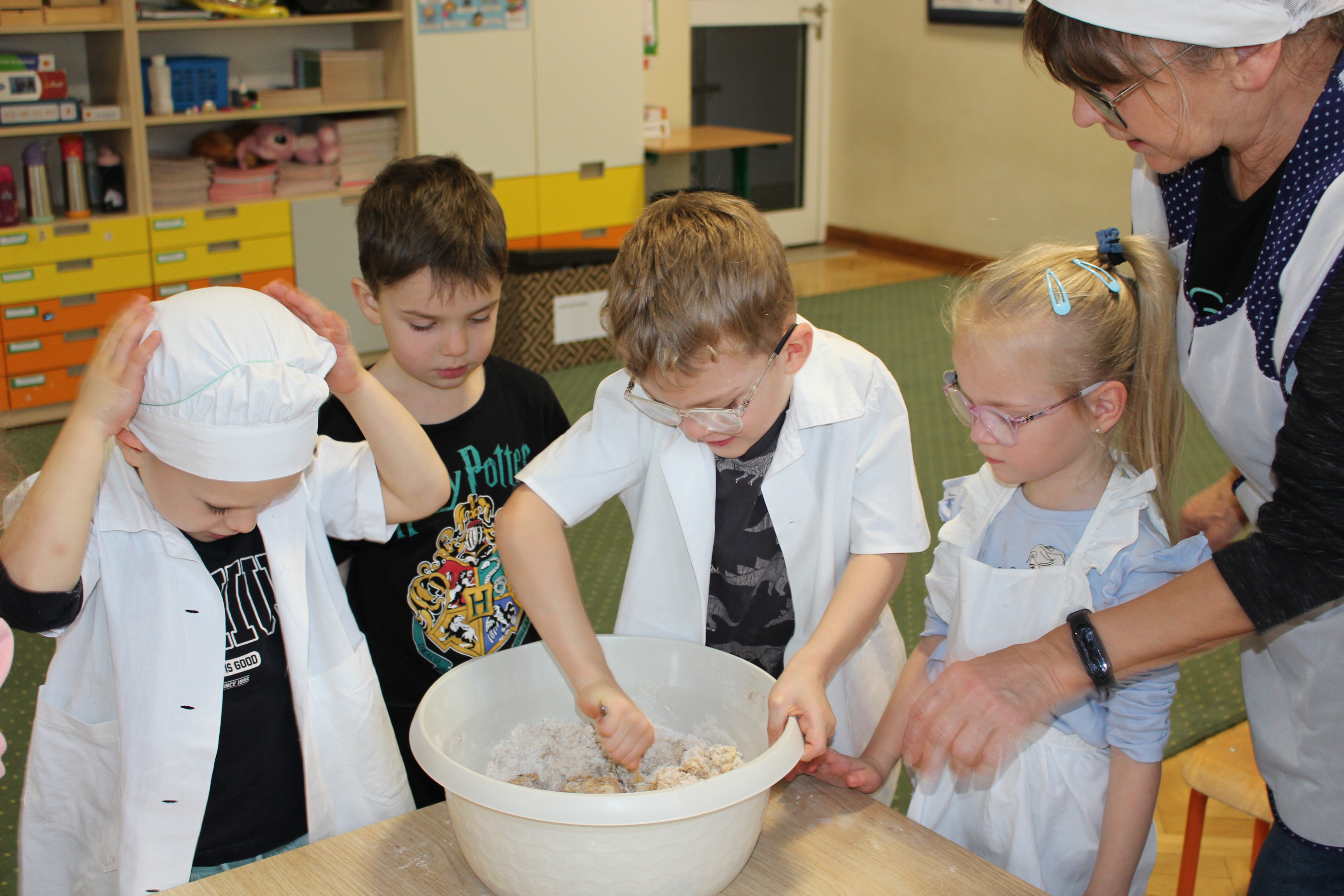 Wspólne pieczenie pierników było nie tylko świetną zabawą, ale także okazją do nauki współpracy, rozwijania samodzielności i ćwiczenia sprawnych rączek. To wyjątkowe wydarzenie na długo pozostanie w pamięci dzieci i stało się pięknym elementem przedszkolnych przygotowań do świąt Bożego Narodzenia.