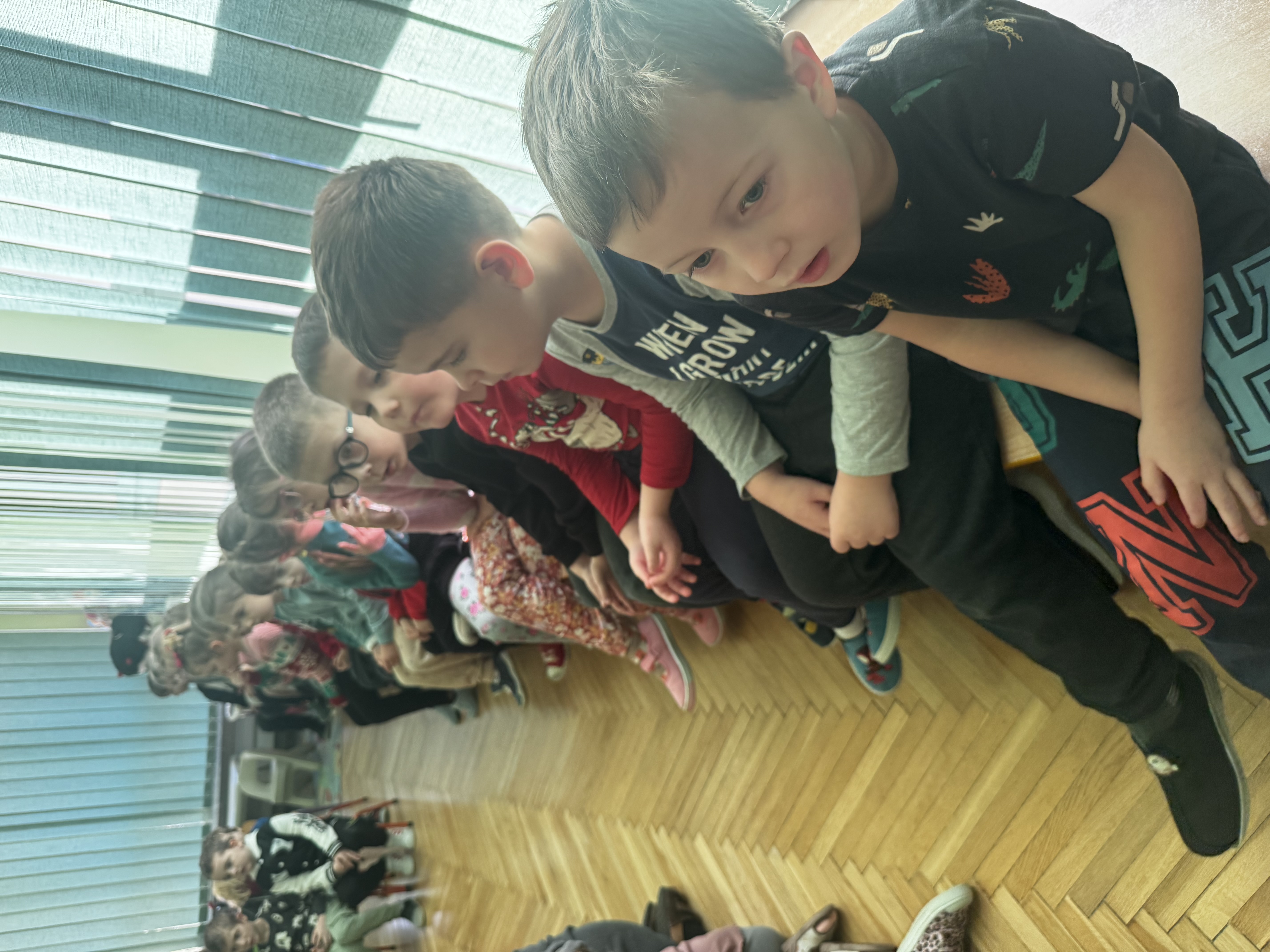 Spotkanie to wprowadziło dzieci w radosny, świąteczny nastrój, łącząc muzykę, wspólne śpiewanie oraz ciekawą opowieść o tradycjach mikołajowych z różnych zakątków świata.