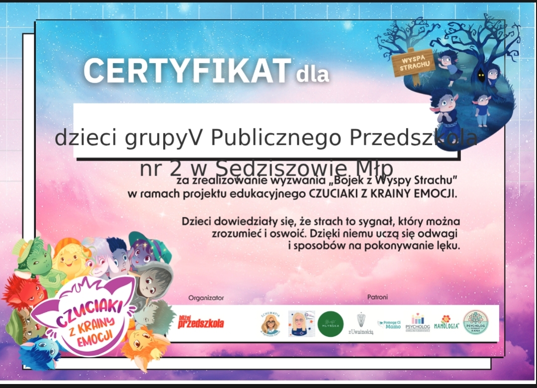 Za zrealizowane wyzwanie dzieci z gr. V otrzymały Certyfikat