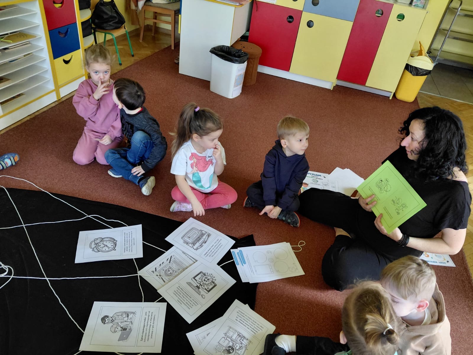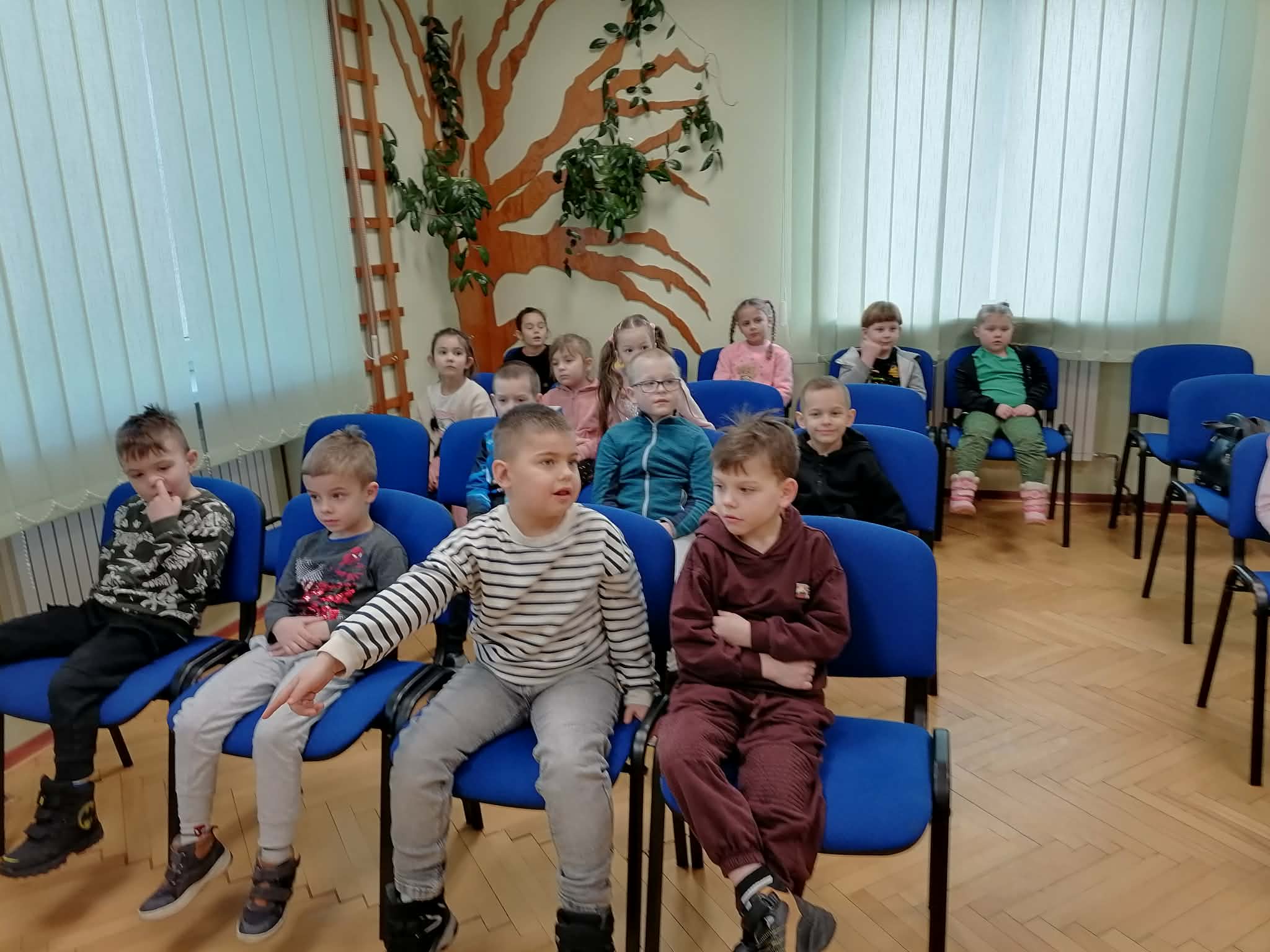 Dzieci wysłuchały bajki czytanej przez panią z biblioteki „O śpiącej królewnie i zaczarowanym ekranie”, wypowiadały się na temat treści bajki, dowiedziały się ile czasu mogą przebywać dziennie przed komputerem, jak ważny jest czas spędzony na zabawie z rówieśnikami, na świeżym powietrzu , jaki wpływ ma przebywanie przed komputerem bez żadnego limitu na zdrowie psychiczne dzieci. Dzieci bardzo chętnie brały udział w zajęciach, zadawały pytania i już zapowiedziały że są chętne na następne spotkania. Dziękujemy za przygotowane zajęcia.