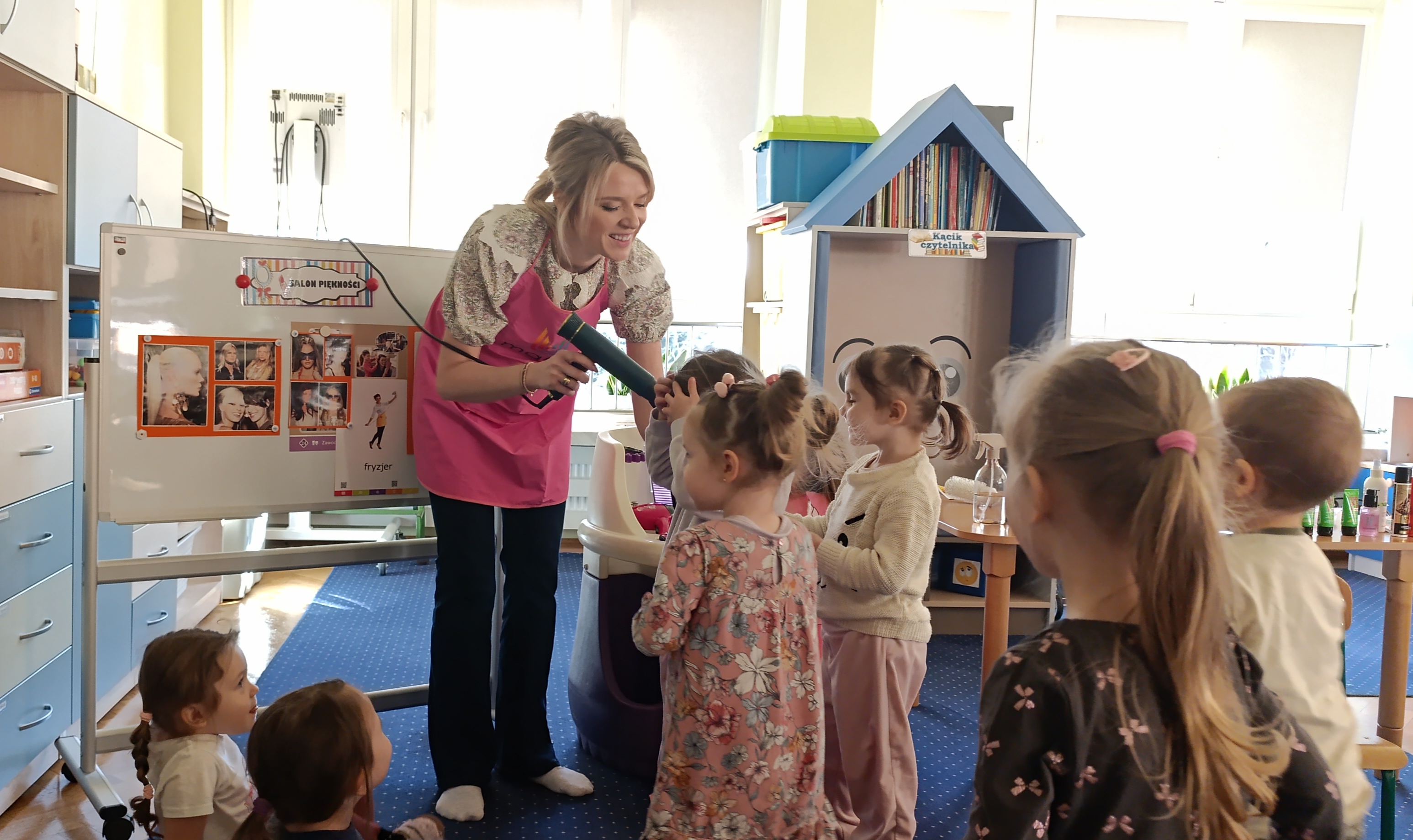 Dla dzieci była to ważna i cenna lekcja, gdyż miały okazję podpatrzeć trudną, wymagającą precyzji i cierpliwości pracę fryzjerki.
