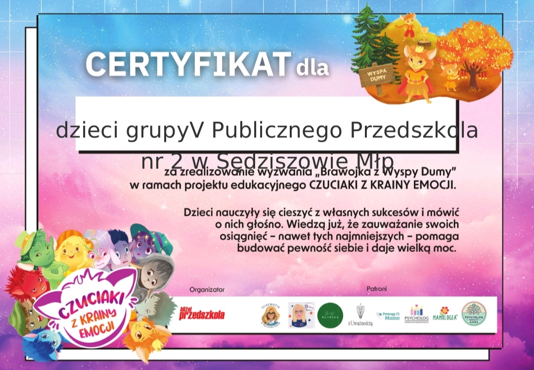 Za zrealizowane wyzwanie dzieci z gr. V otrzymały Certyfikat
