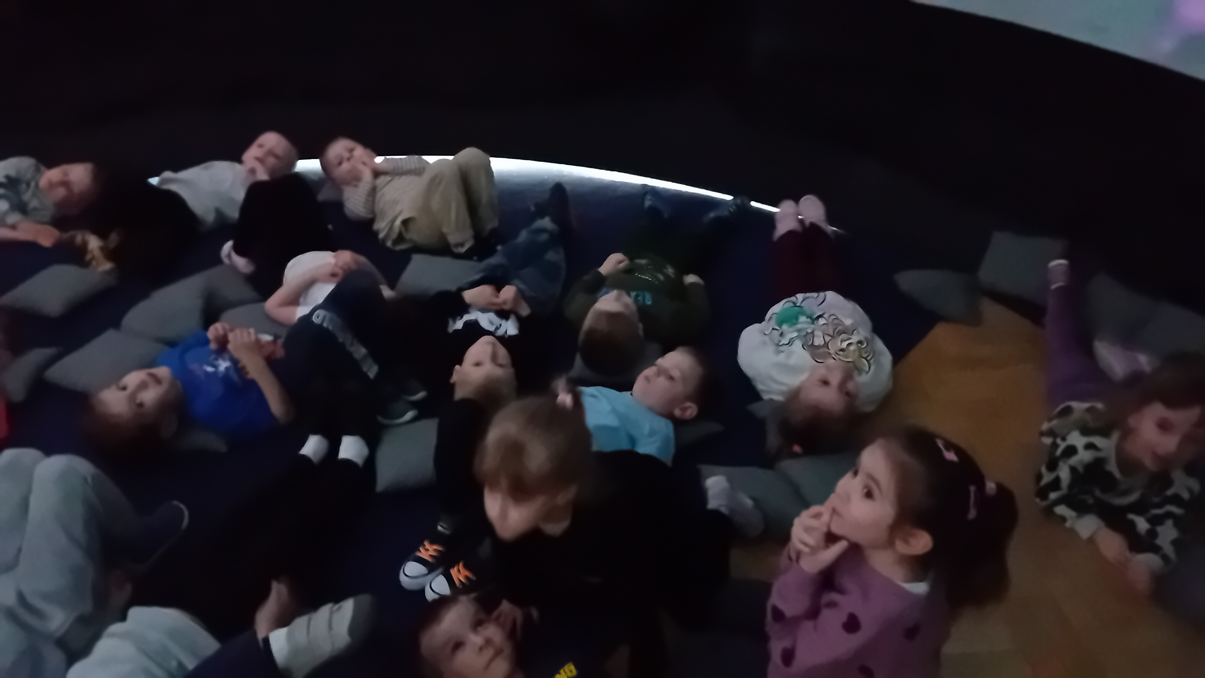 Podczas projekcji przedszkolaki mogły „podróżować” w kosmosie, poznawać tajemnice przyrody oraz odkrywać niezwykłe zjawiska otaczającego nas świata. Było to nie tylko ciekawe doświadczenie wizualne, ale również wartościowa lekcja, która rozbudziła ciekawość i chęć poznawania nowych rzeczy. Wydarzenie wzbudziło wiele emocji i radości – na twarzach dzieci przez cały czas gościł uśmiech i zachwyt. Dla wielu z nich była to pierwsza okazja do kontaktu z tak nowoczesną formą edukacji.