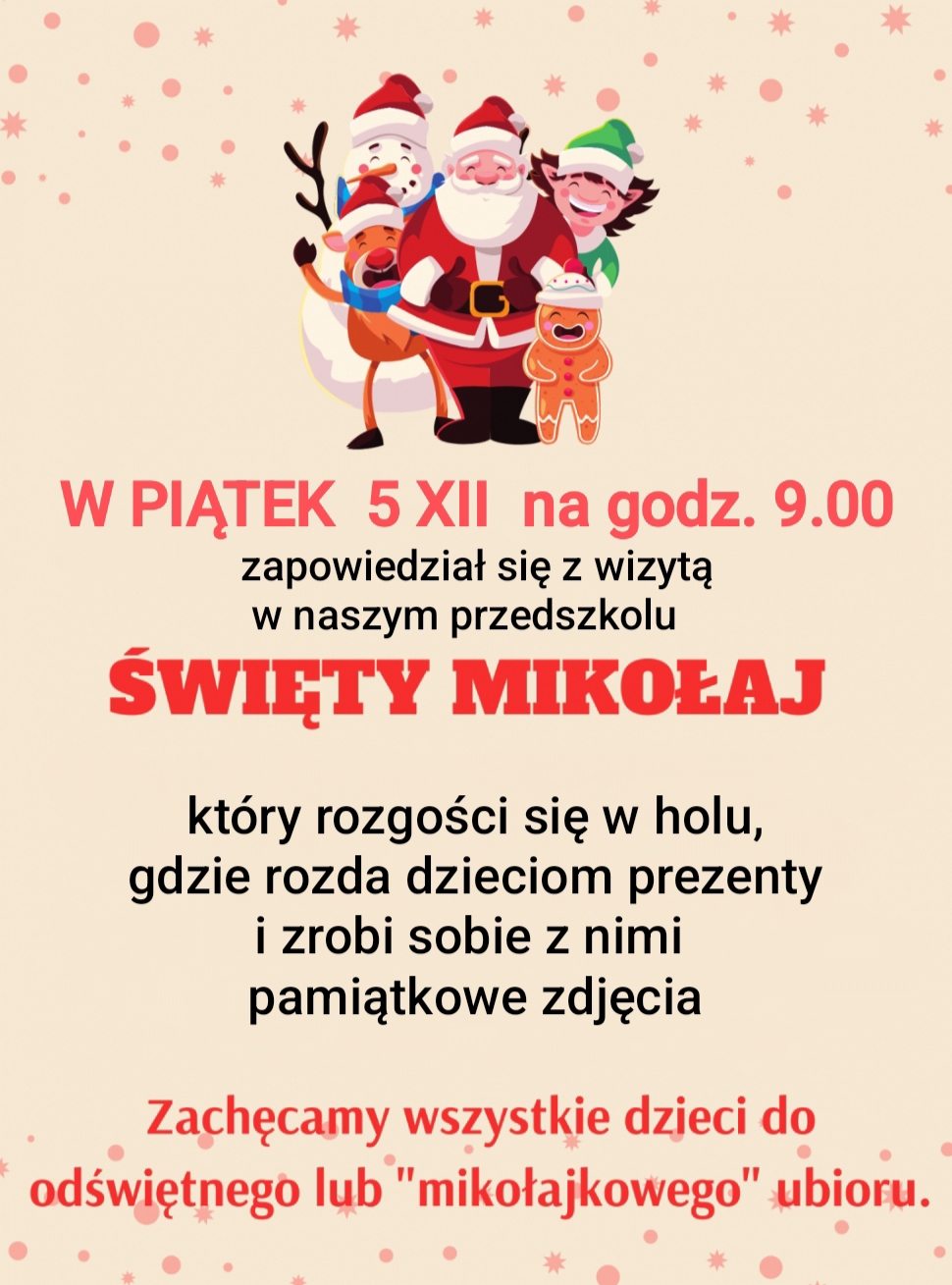 Aby wyrazić szacunek dla obchodzonego święta i podkreślić jego podniosły i ważny wymiar, bardzo prosimy o odświętny ubiór dzieci w tym dniu.