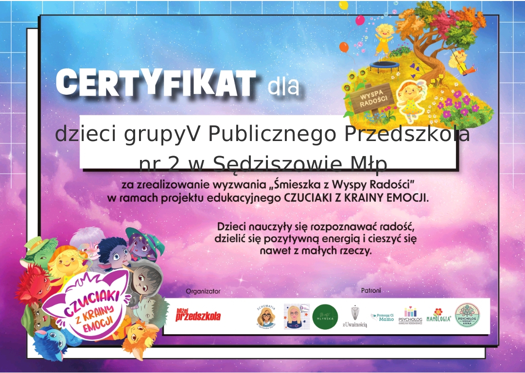 GRUPA V REALIZUJE OGÓLNOPOLSKI PROJEKT "CZUCIAKI Z KRAINY EMOCJI" - ŚMIESZKA