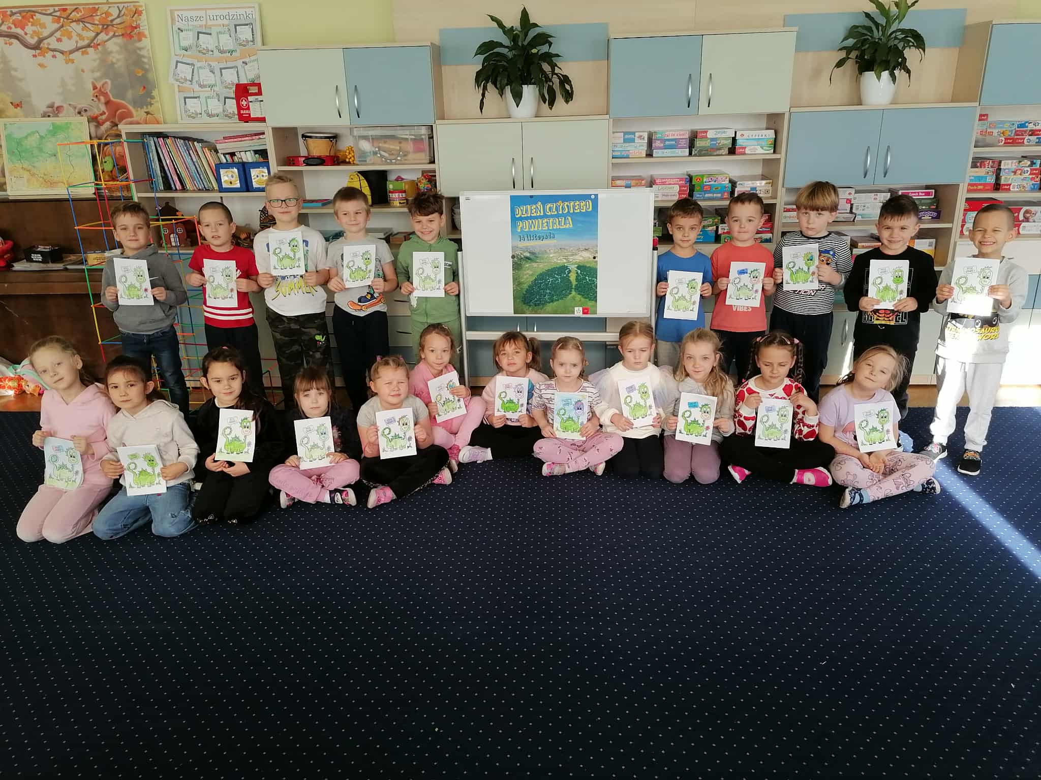 Dzieci wysłuchały legendy pt „Smok i smog”, dowiedziały się co to jest smog i jak przeciwdziałać jego powstawaniu. Wspólnie z nauczycielami odtwarzały treść wysłuchanej legendy układając chronologicznie historyjkę obrazkową .Poznały Smoka Dinka i razem śpiewały piosenkę ilustrując treść piosenki wymyślonymi ruchami. Zabawa w „burzę mózgów” pozwoliła na tworzenie ekologicznych haseł mających uświadomić wszystkim konieczność dbania o nasza planetę. Na koniec zajęć dzieci otrzymały książeczki kolorowanki z Dinkiem.